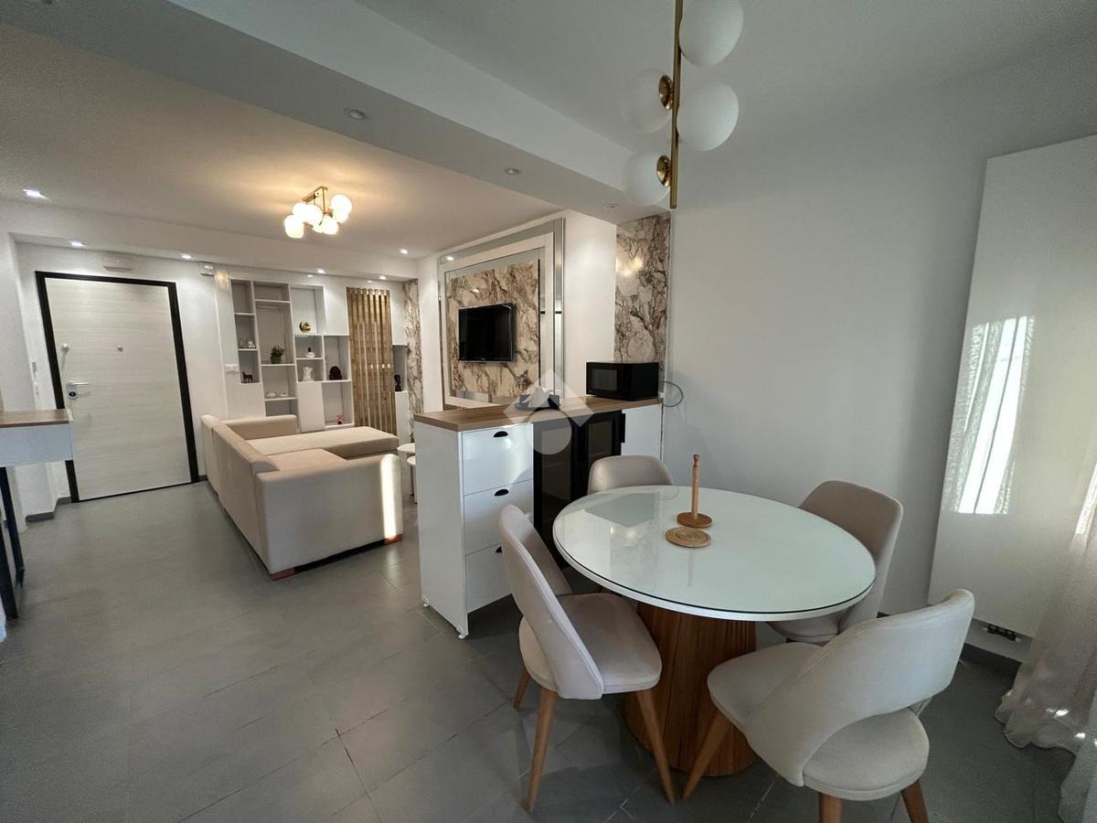 Dès l’entrée, vous découvrirez un salon moderne et lumineux, élégamment aménagé, comprenant un coin salle à manger et donnant accès à un balcon agréable.